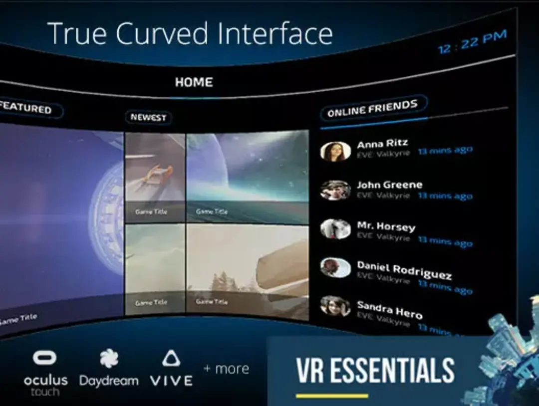 Enrich your VR project with a UI that will fully immerse your players. Get that Minority Report feel with curved, interactive screens.